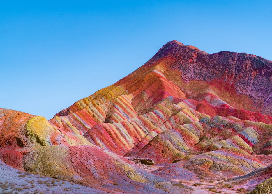 Dãy núi cầu vồng chủ yếu có màu của sa thạch đỏ đậm, nhưng mỗi ngọn núi mang màu sắc và các lớp khác nhau. Ở mỗi góc nhìn, dãy núi lại ánh lên các màu lạ với sắc độ độc đáo từ đỏ tươi, hạt dẻ, tới vàng, xanh nước biển...
