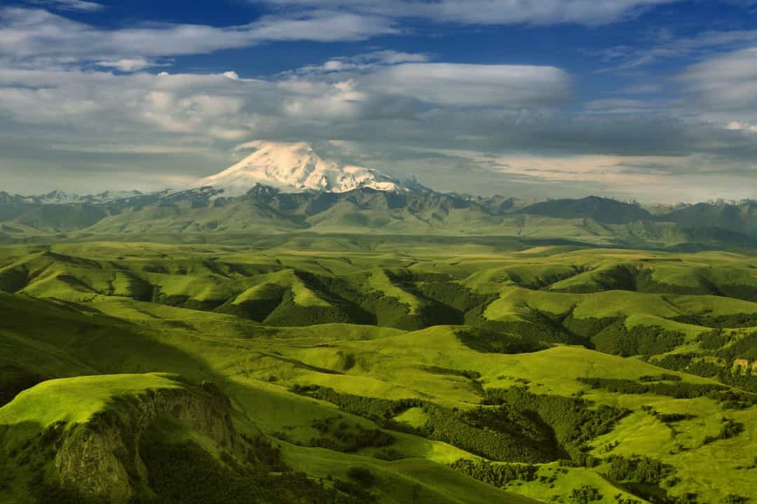 Đỉnh Elbrus nằm ở miền tây dãy núi Kavkaz, tại nước Cộng hòa tự trị Kabardino - Balkaria thuộc Liên bang Nga, gần biên giới với Gruzia. Một núi lửa đã không hoạt động kể từ khoảng 2.000 năm trước, nó là đỉnh núi cao nhất trong dãy Kavkaz (5.642m).