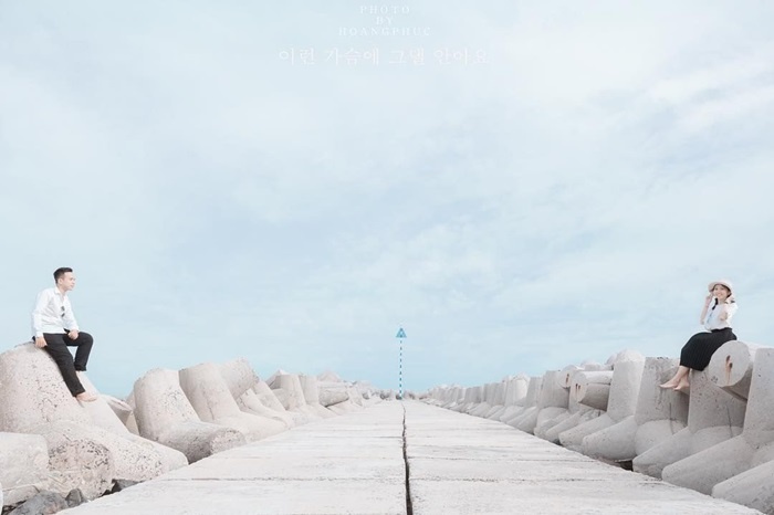 Xa xa là cầu cảng màu trắng độc đáo, làm nên thương hiệu của điểm đến này. Không phải ngẫu nhiên, nơi đây được nhiều cặp đôi lựa chọn để chụp ảnh cưới, check-in.