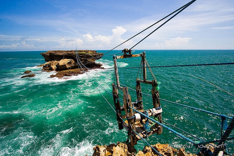 Di chuyển trên một chiếc cáp treo bằng gỗ để vượt qua biển sẽ là một thử thách hấp dẫn dành cho các du khách yêu thích mạo hiểm.