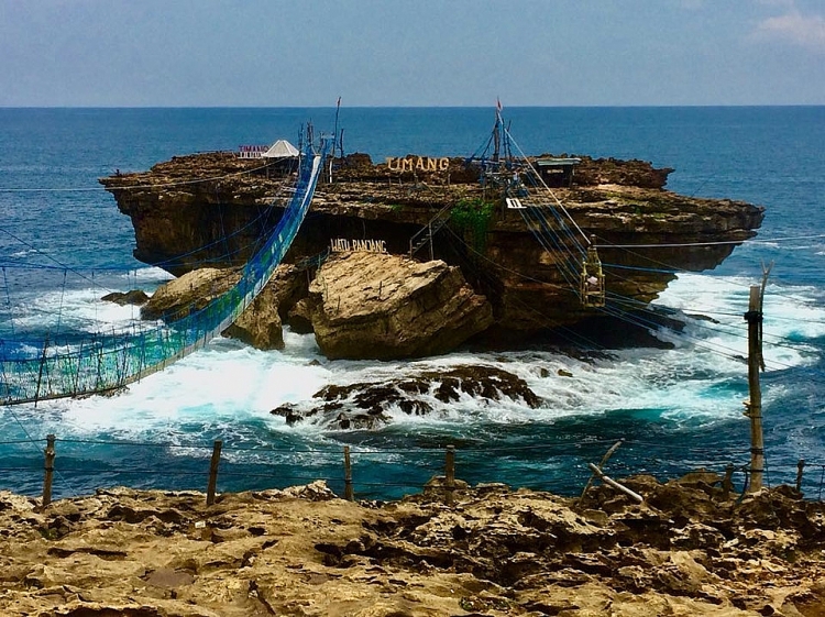 Là một trong những bãi biển đẹp nhất ở Gunungkidul (Yogyakarta, Indonesia), biển Timang bao gồm hai khu riêng biệt: Bãi biển phía đông nguyên sơ với màu xanh dứa trên dải cát trắng. Ngược về phía tây là những ngọn đồi dốc đứng trực tiếp hướng ra biển và đối diện với đảo Batu Panjang xinh đẹp.