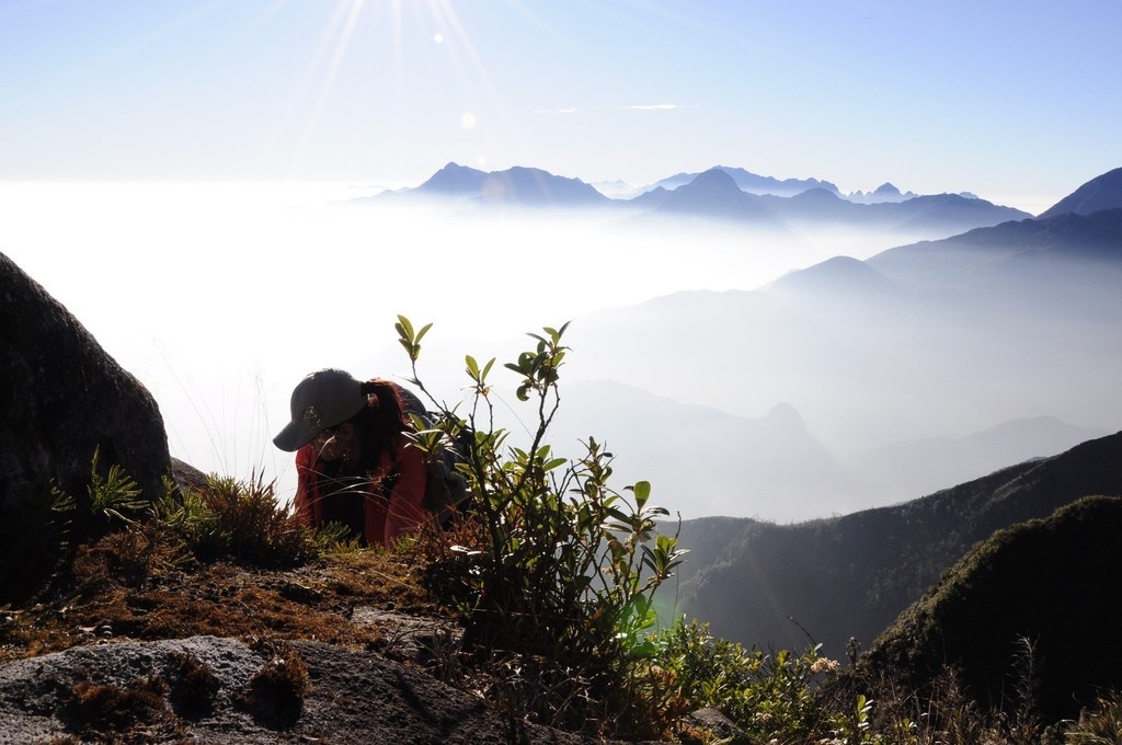 Hành trình lại tiếp tục, chỉ một chút nữa thôi, bạn sẽ chạm được tới cổng trời. Và kìa, đỉnh Bạch Mộc Lương Tử kia rồi, mắt ai cũng ánh lên niềm hân hoan khó tả. Từ đỉnh núi, nhìn bao quát khắp nơi mới thấy không gian rộng lớn làm sao, nhấp nhô phía xa là những khối núi đang trồi lên giữa biển mây, có cả Fansipan, Pu Ta Leng và Pu Si Lung trong đó nữa.