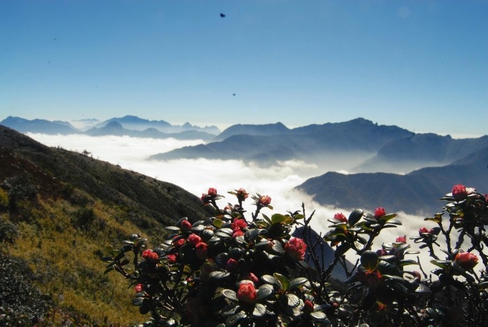 Càng lên cao, con đường chinh phục lại càng trở nên gian nan, tần suất vượt núi cao, leo dốc đá dựng đứng đầy rêu phủ lại càng tăng, thậm chí có những lúc phải băng rừng lội suối trong cái lạnh thấu xương hay phải cắm lều và ngủ trong khí trời xấp xỉ 0 độ C.
