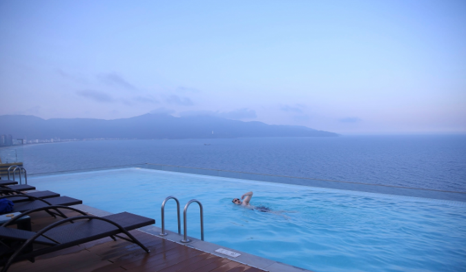 | Bể bơi vô cực trên tầng 25 tại khách sạn TMS Hotel Da Nang Beach. |