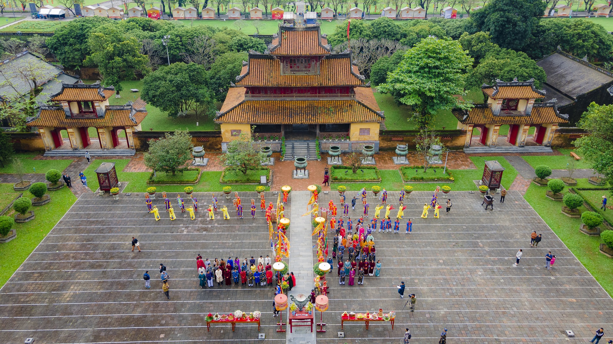 Đoàn rước cùng các sản vật xứ Huế được diễu hành qua các tuyến đường, sau đó dâng lên ban thờ trong Thế Miếu, mong muốn dâng lên các bậc tiền nhân hương vị Tết xứ Huế.