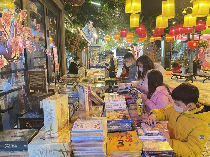 Phố Sách Xuân Nhâm Dần nhộn nhịp tối mùng 3 Tết Nguyên đán. Ảnh: Minh Anh