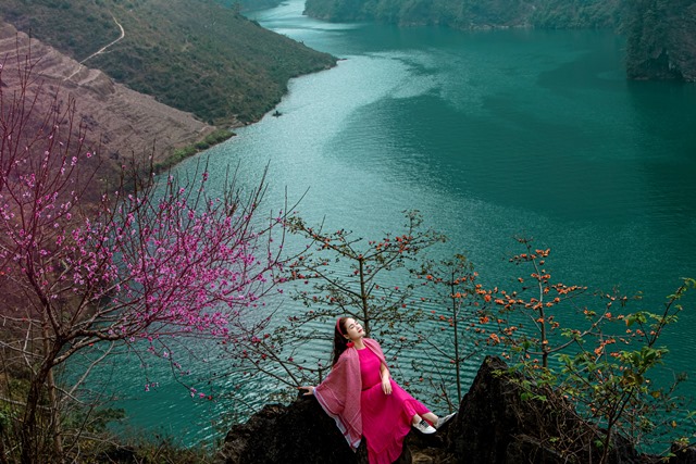 | Hoa mộc miên, hoa đào bên dòng sông Nho Quế (ảnh Nguyên Minh Diệp) |