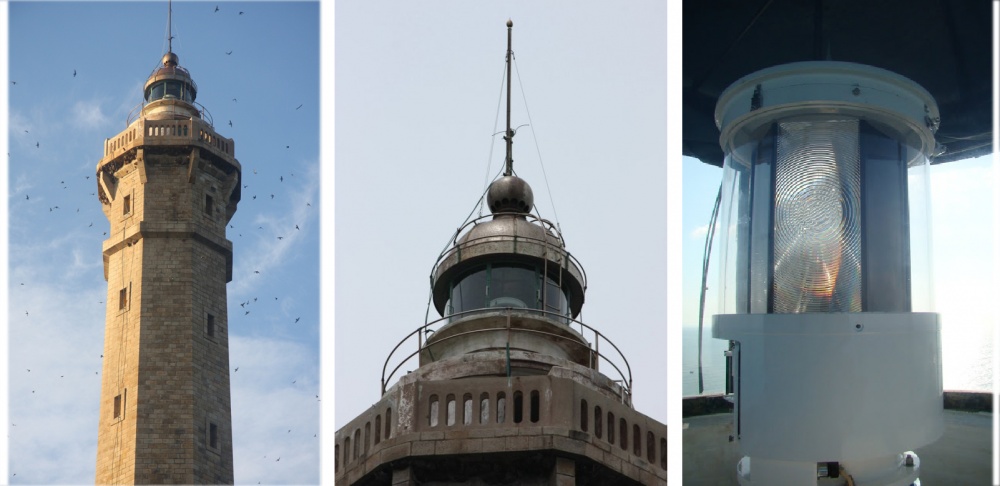 Được xây dựng vào tháng 2/1897 do kiến trúc sư người Pháp Snavat thiết kế, tháp đèn xây bằng đá cao 35 m, độ cao toàn bộ từ tầm ngọn đèn đến mặt biển là 65 m, kích thước cạnh của tháp rộng 3 m, đỉnh rộng 2,5 m, chiều dày tường tháp từ chân tháp đến độ cao 6 m là 1,6 m, càng lên cao độ dày càng giảm từ 1,5 m và mỏng nhất ở đỉnh tháp là 1 m. Trên ngọn tháp có bóng đèn lớn 2.000W, có bán kính quét sáng là 22 hải lý, tương đương 40 km, dùng làm tín hiệu hướng dẫn tàu bè qua lại.