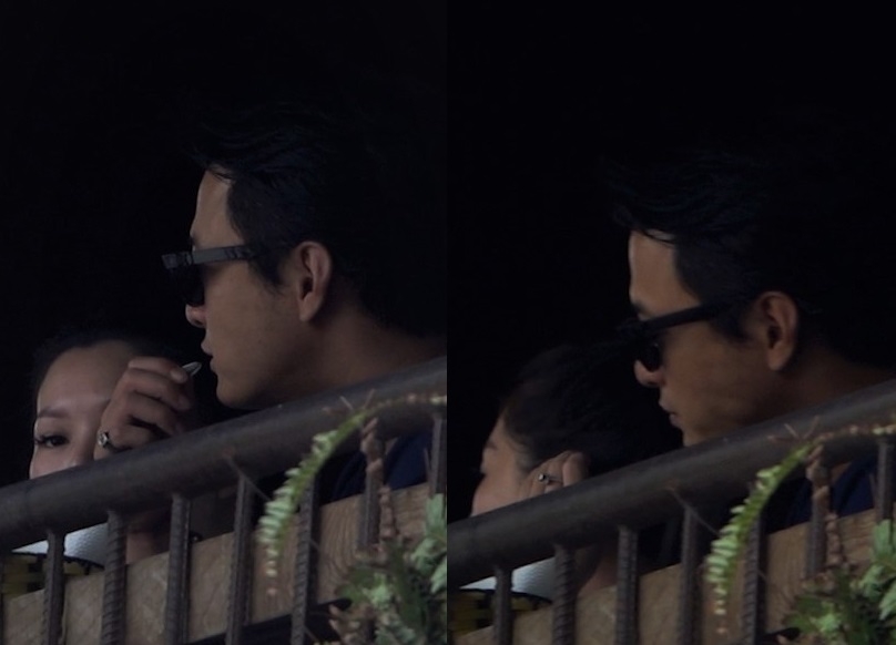 Trong ảnh, Hồng Đăng đeo kính đen, ngôi ở góc ngoài ban công để ngắm đường phố và tránh sự chú ý của người khác. Có thể thấy Hồng Đăng cùng với vợ đang trò chuyện rất thoải mái như chưa từng có chuyện gì xảy ra.