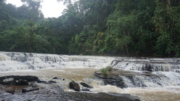 Đến Thác Thủy Tiên bạn sẽ ngạc nhiên khi nhìn thấy ba tầng thác đổ với những tảng đá ngộ nghĩnh gối chồng lên nhau. Tầng thứ nhất có độ dốc thấp lên xuống dễ dàng, lòng thác nhỏ, nước chảy êm đềm. Hai bên có nhiều rễ cây rủ xuống đong đưa như những chiếc võng tạo thành một bức tranh thiên nhiên tuyệt đẹp. Không dừng lại ở đó, dòng nước lại tiếp tục ào ạt trút xuống những bậc đá lớn tạo thành tầng thứ hai với nhiều hồ nước xanh mát mẻ. Ở đây, bạn có thể ngâm mình dưới những bể nước lớn mát lạnh. Cuối cùng là tầng thứ 3 tiếp tục đổ ào ạt xuống gềnh đá bên dưới.