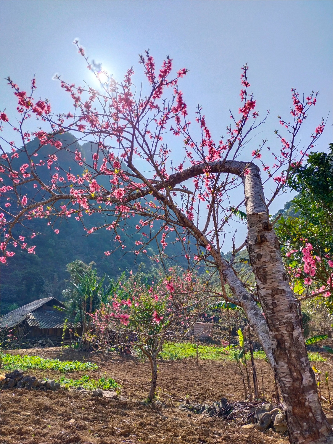 Hoa đào bung nở trên những thân cây cổ thụ cứng cỏi, rắn chắc. Thoáng nhìn thì những cành đào chẳng khác gì cây củi khô màu xám mốc, điểm thêm những chấm đỏ hồng rực rỡ. Điều thú vị là những bông hoa tươi thắm ấy đang nở rộ trong không gian cao nguyên đá mộc mạc tại xã Vũ Nông.