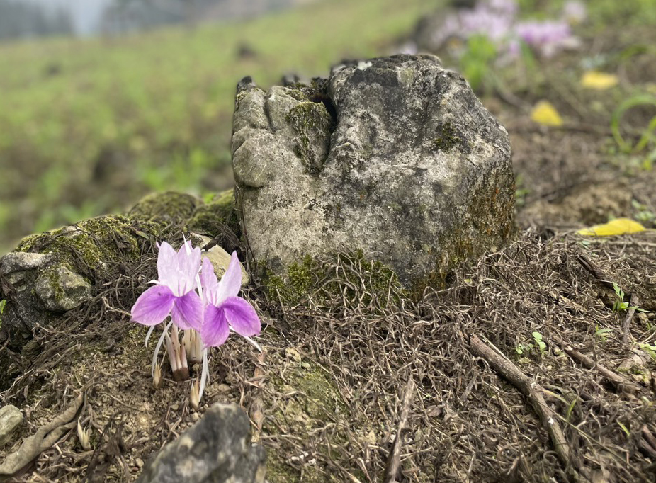 Đầu tháng tư, trên nhiều nương ngô ở Sín Lùng Chải, xã Lùng Khấu Nhin, huyện Mường Khương, hoa nghệ đất (theo cách gọi của người dân địa phương) bắt đầu bung nở.