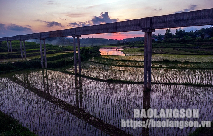 | Cánh đồng nằm kề bên sông Ba Thín và 2 đập nước lớn là Tà Keo và Bản Lải nên nước phục vụ sản xuất nông nghiệp luôn dồi dào và đầy đủ. Hệ thống mương dẫn nước trải khắp cánh đồng, nhiều đoạn được xây trên cao nối trực tiếp các quả đồi. |