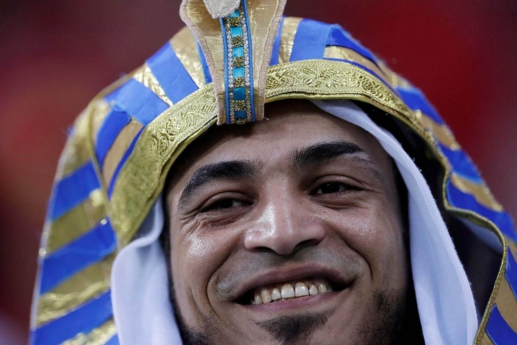 Những cổ động viên Tunisia mang chiếc mũ của các Pharaoh trên các khán đài