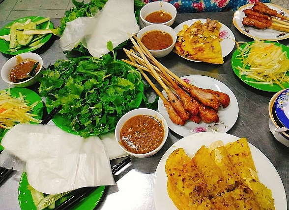 Là món ăn nổi tiếng của Đà Nẵng, bánh xèo, nem lụi tại đây được chế biến theo cách rất riêng. Vỏ bánh xèo được tráng giòn, mỏng, bên trong có nhân tôm, thịt và giá. Khi ăn, gói một miếng bánh xèo, thêm một chút rau sống, chuối xanh, khế và chấm với mắm nêm thì quả là hợp vị.