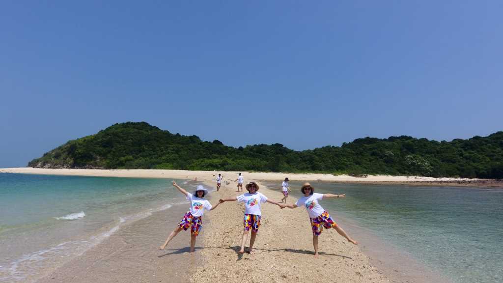 | Du khách chụp ảnh trên đảo Cá Chép trong tour du lịch 3 đảo tại huyện Cô Tô. |