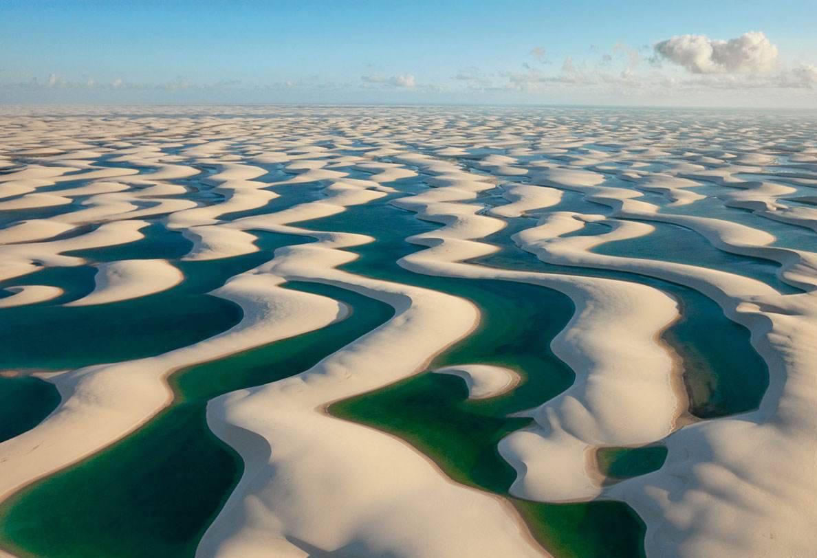 Câu trả lời là do sa mạc Lencois Maranhenses nằm gần đường xích đạo, ngoài việc chịu sự chi phối của vành đai áp thấp xích đạo, nó còn chịu ảnh hưởng của gió mậu dịch đông bắc và gió mậu dịch đông nam. Đồng thời, dưới tác động của gió đông, mang theo cát biển và thổi vào đất liền, thúc đẩy sự mở rộng của cát biển. Một sa mạc kéo dài 50 km trong đất liền được hình thành, và nó hiện tại vẫn đang tiến sâu vào đất liền với tốc độ 20 cm mỗi năm. Do hàm lượng muối cao của cát biển nên cát sa mạc có màu trắng. Mẹ thiên nhiên đã tạo ra một sa mạc thật kỳ diệu và đặc biệt phải không bạn?