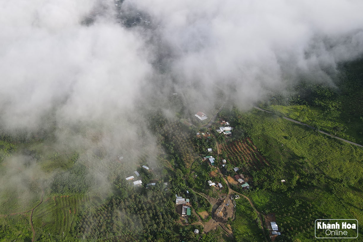 | Những ngôi làng được che lớp mây trắng vào buổi sớm. |