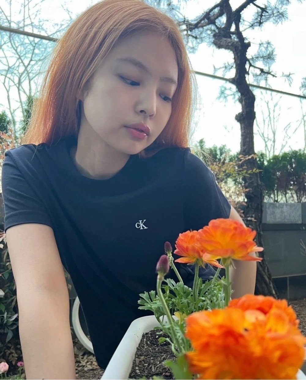 Trên Instagram cá nhân, Jennie đã chia sẻ những bức ảnh mới về khoảnh khắc tận hưởng mùa xuân với mái tóc mới màu cam cực “cháy”.