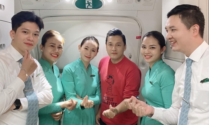 Gặp 'anh hai' Lam Trường trên chuyến bay, phi hành đoàn của hãng hàng không nhận là fan của anh, xin chụp ảnh chung với thần tượng.