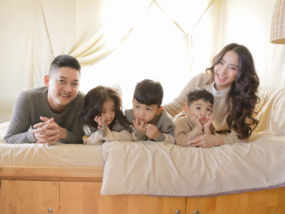 Trên trang cá nhân mới đây, Hải Băng hạnh phúc khoe khung ảnh đại gia đình đầy ấm áp. Cả nhà 5 người diện đồ "tông xuyệt tông", vui vẻ tạo dáng chụp hình trên giường. Trong từng bức ảnh, không khó để nhìn thấy gương mặt tràn ngập niềm vui và hạnh phúc của hai vợ chồng nhà giọng ca Viên đá nhỏ.