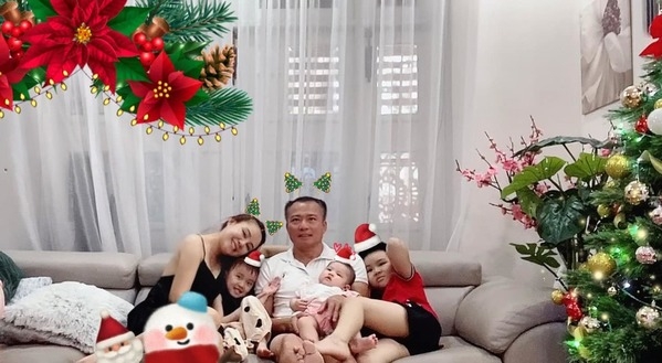Mới đây trên trang cá nhân, Vy Oanh chia sẻ khoảnh khắc ấm cúng bên gia đình. Đây cũng là một trong những lần hiếm hoi nữ ca sĩ đăng khung ảnh với chồng cùng ba con nhỏ cực đáng yêu. Có thể thấy căn nhà tràn ngập không khí giáng sinh khi trang trí một cây thông lớn với cây cảnh, hoa tươi. Bé Voi và bé Tuệ Vi nhí nhố chụp ảnh với bố mẹ, đặc biệt mọi sự chú ý đổ dồn về cô con gái út 5 tháng tuổi của Vy Oanh.