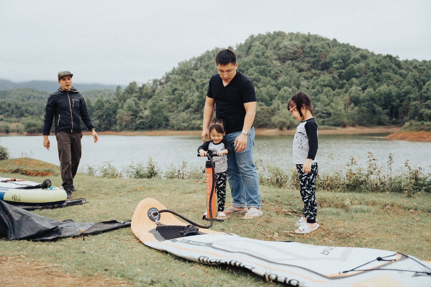 | Bơm hơi cho thuyền SUP (Ảnh: Hà Nghĩa) |