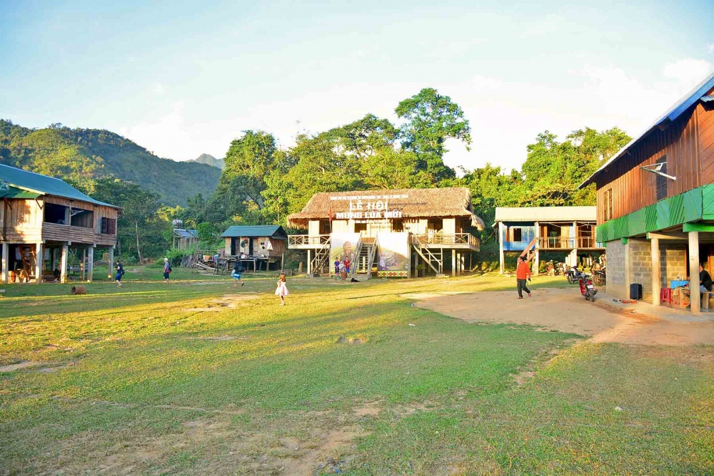 | Xóm Rờ Vê, nơi bà con Vân Kiều đón khách. Ảnh: Hoàng Bùi |