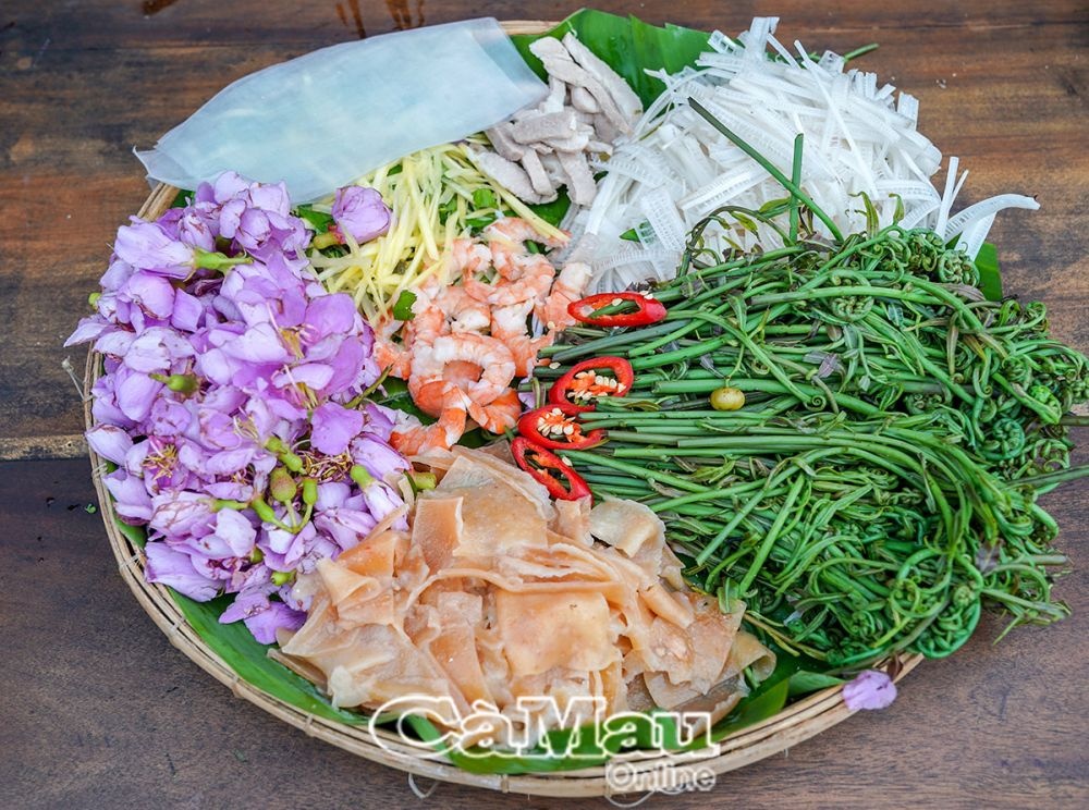 Du khách có dịp về tham quan, du lịch xứ rừng U Minh Hạ, đừng quên thưởng thức món gỏi cuốn hoa mua này nhé.