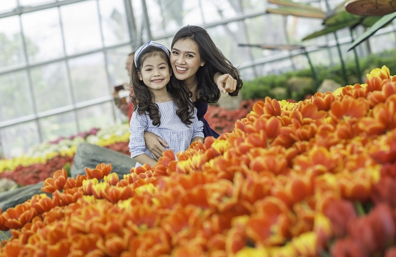 Vườn hoa khổng lồ được sắp đặt nghệ thuật, đan xen sắc màu như một bức tranh tuylip hoàn hảo tràn ngập sắc xuân. Lễ hội năm nay sở hữu gần 50.000 gốc hoa từ Hà Lan với 10 sắc màu rực rỡ, mở cửa đón khách thưởng ngoạn những biểu tượng của hạnh phúc và giàu sang trong tiết trời đẹp nhất năm của đảo nhiệt đới.
